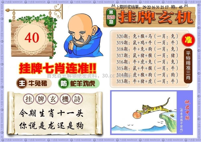 | 310期七肖 | 虎蛇鸡兔龙猪羊 | 开:虎16 |